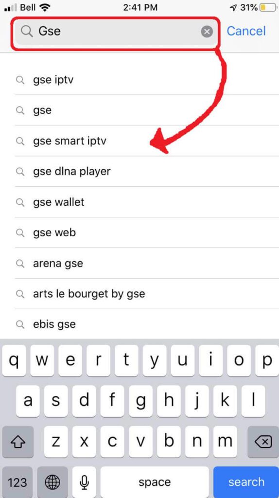Next, search for the GSE SMART IPTV app.