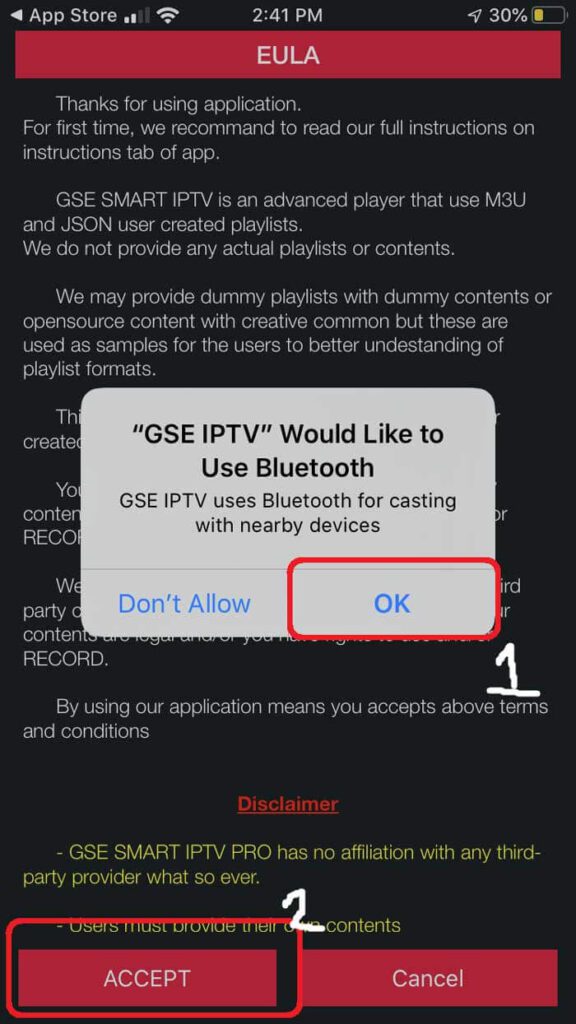 Once you’ve installed the GSE app, go ahead and open it and allow for Bluetooth connectivity. This way you can cast your screen from iPhone or iPad directly to your TV via Google Chromecast.
