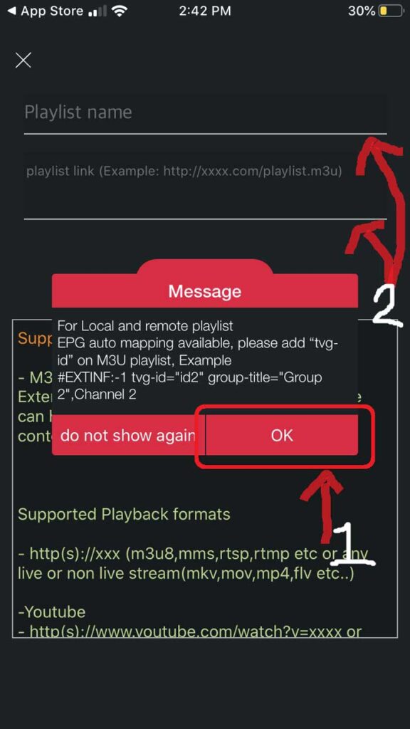 Once entered it should download the playlist. If it does not, go back to the playlist manager menu (SEE STEP 5). Here you should see the M3U URL file we just uploaded. Tap it to load the playlist created.